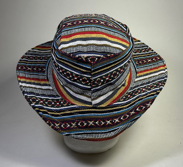 Embark on stylish adventures with our Nepalese nomad Backpacker Hat. This vibrant headpiece showcases a kaleidoscope of traditional patterns in rich reds, blues, and earthy tones, expertly woven into a durable fabric. The wide, flexible brim offers ample sun protection while adding a dash of bohemian flair. Handcrafted by skilled artisans, each hat is a unique piece of wearable art, blending cultural heritage with modern style. Perfect for festival-goers, travelers, or anyone seeking to make a bold statement. The breathable fabric ensures comfort in various climates, making it an ideal companion for your global explorations or local outdoor activities. Embrace the spirit of adventure and cultural appreciation with this eye-catching, versatile hat.