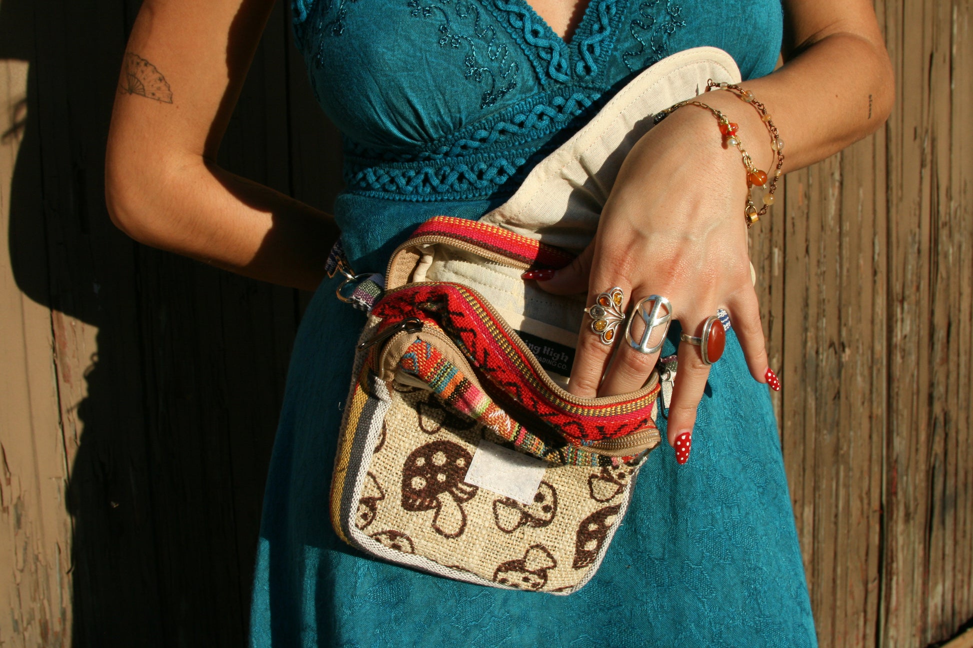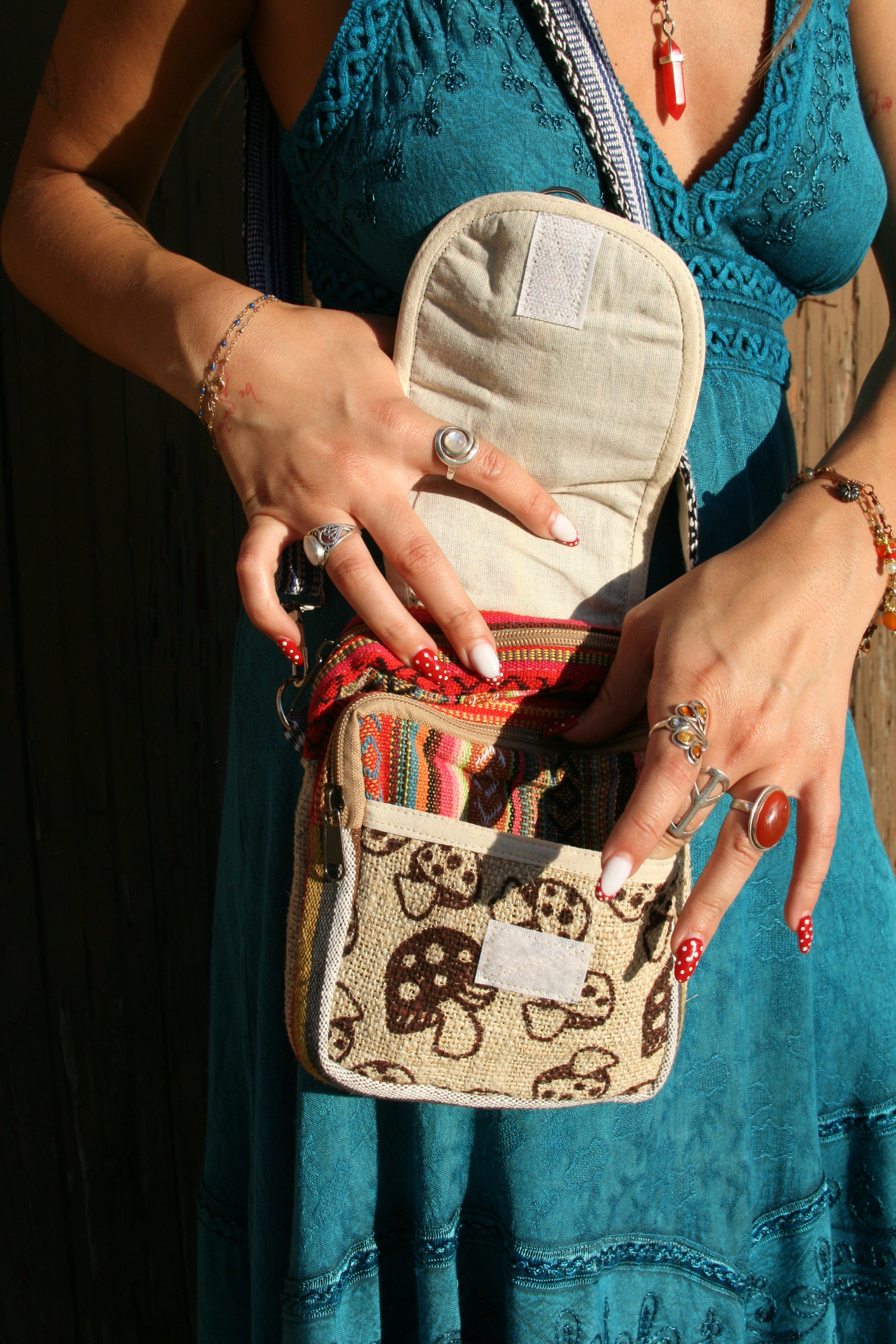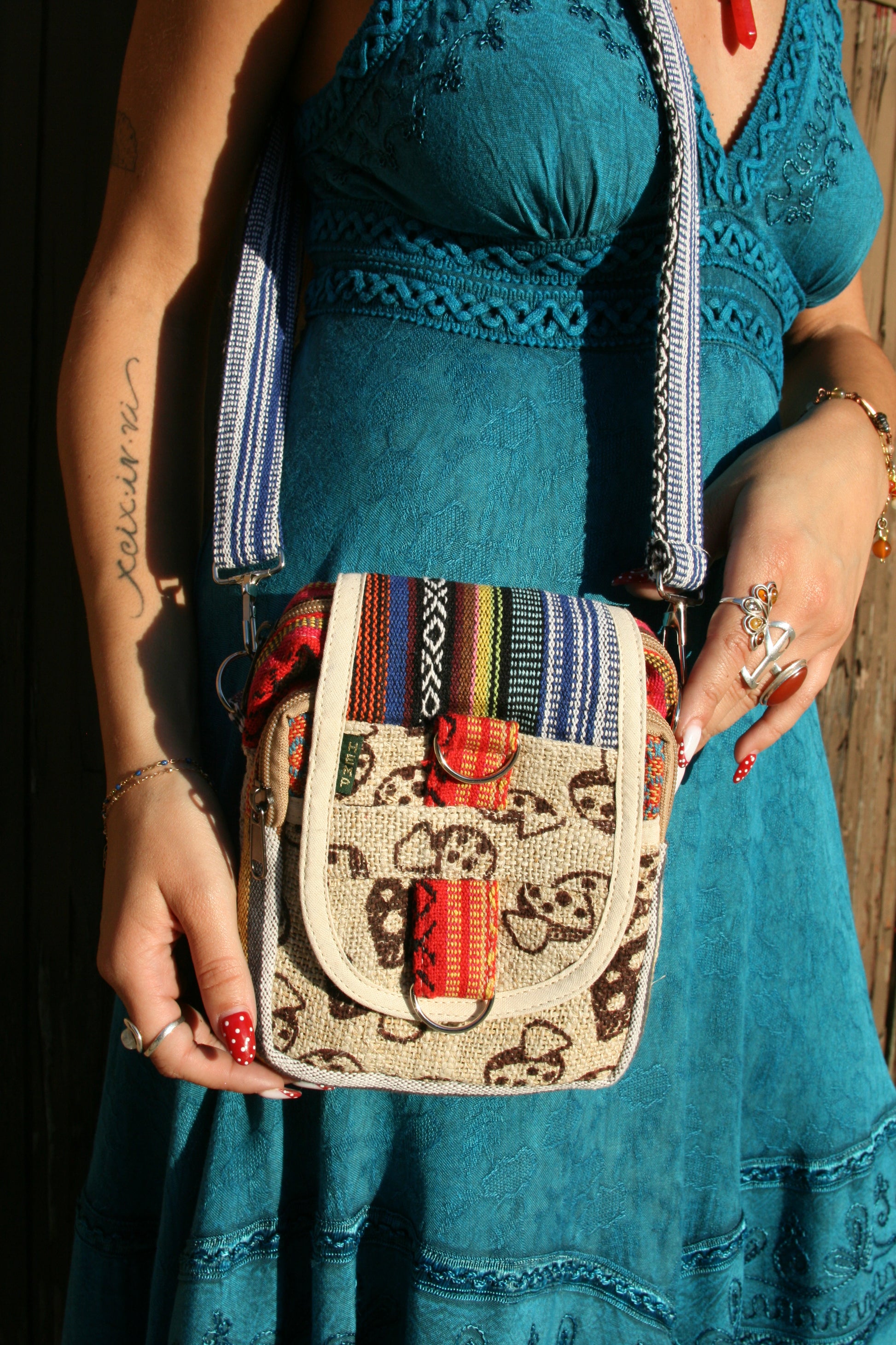 Embrace Mother Earth's playful spirit with this enchanting Hemp Mushroom 5 Pocket bag from Nepal's artisan villages. Dancing with rainbow-striped trim and natural hemp canvas, this conscious crossbody features thoughtful organization with multiple pockets for your sacred treasures. The whimsical fungi pattern celebrates nature's magic, while sustainable materials honor our planet's gifts.