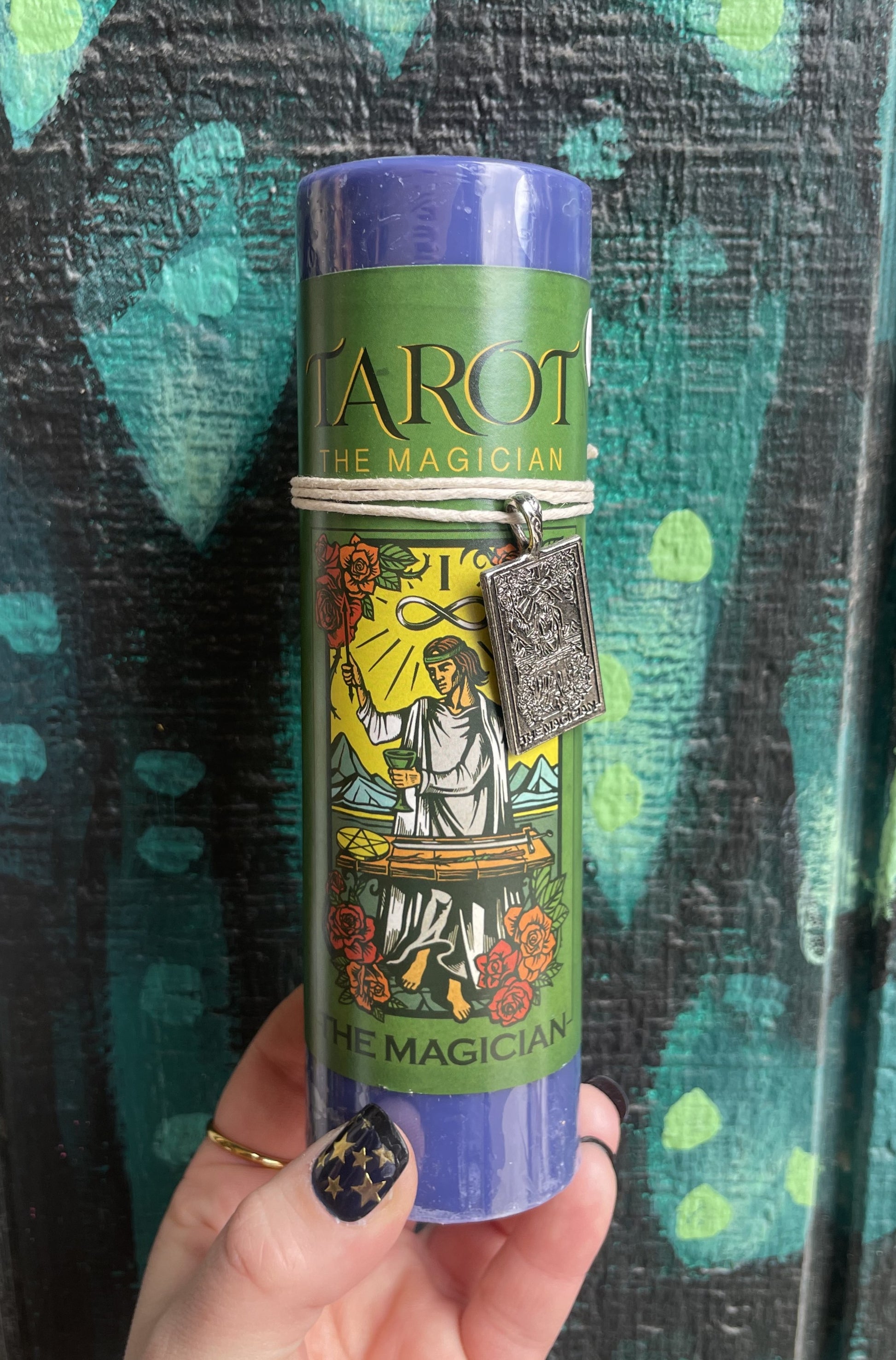 Based off the traditional tarot card, The Magician Candle comes with The Magician pendant.