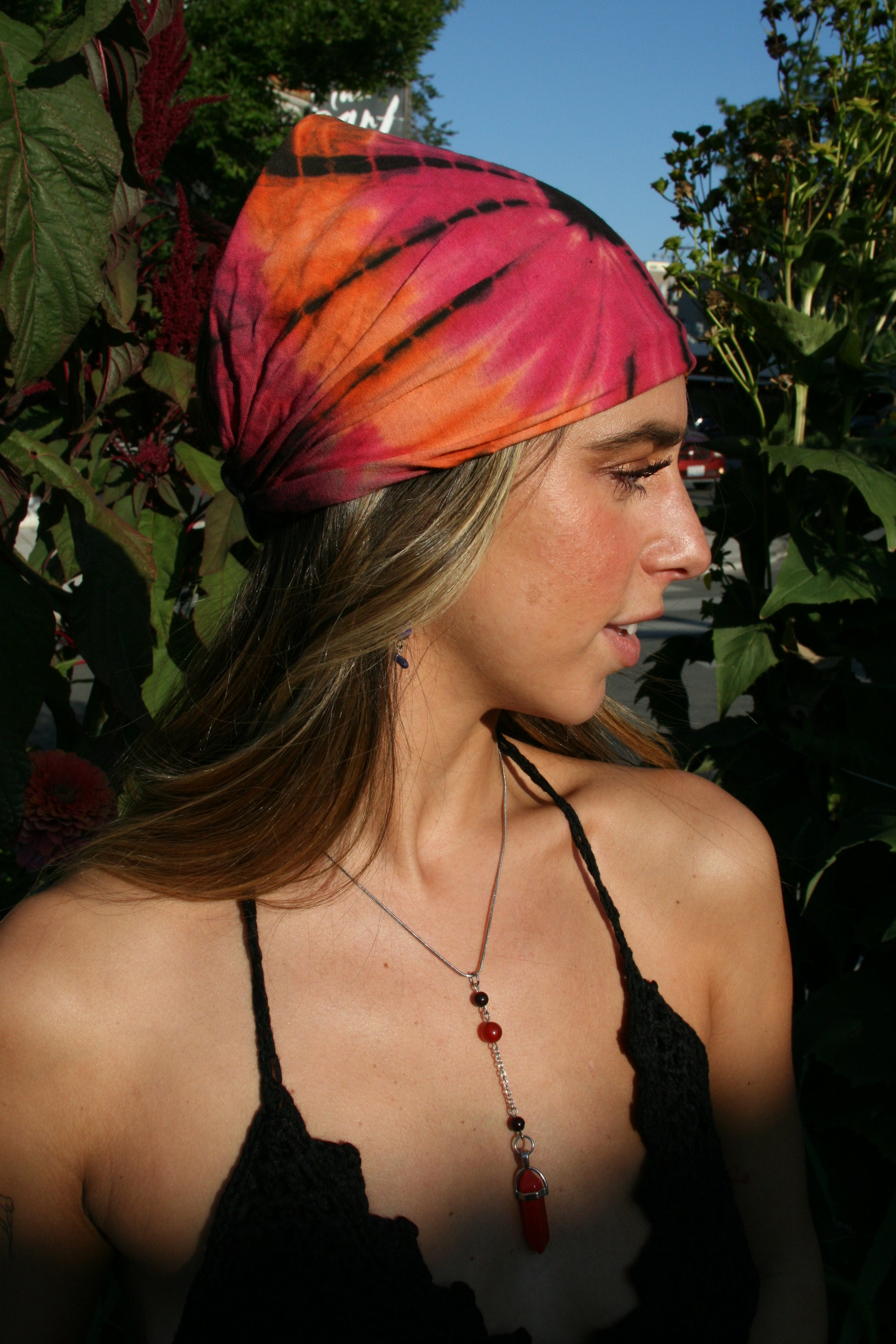 Assorted Colors - Elastic headband with assorted tie dye, adjustable top for full coverage.