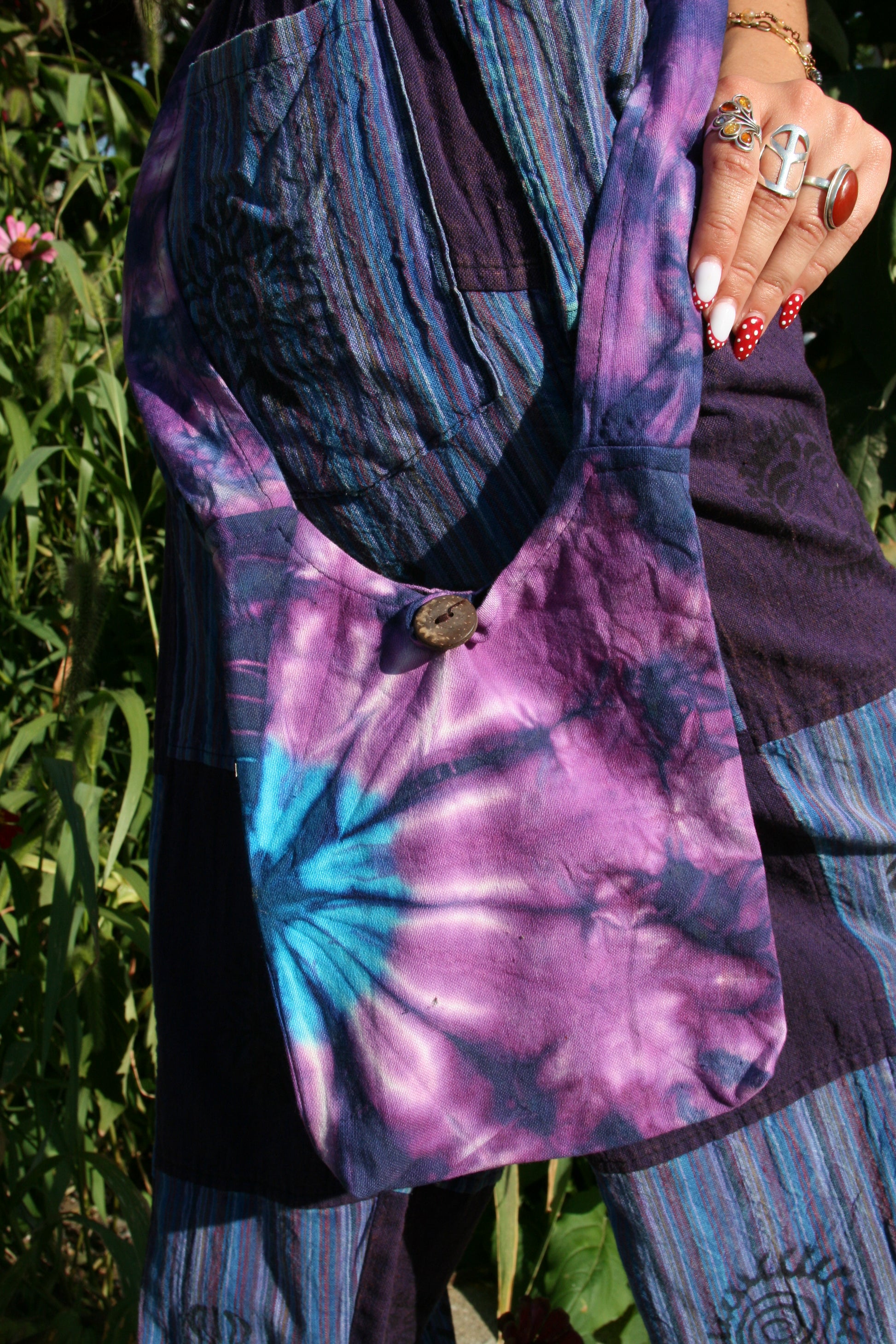 Assorted Colors - 6" x 8" Small cotton Tie Dye bag - zipper pocket, zipper close - Hand Made in Nepal.